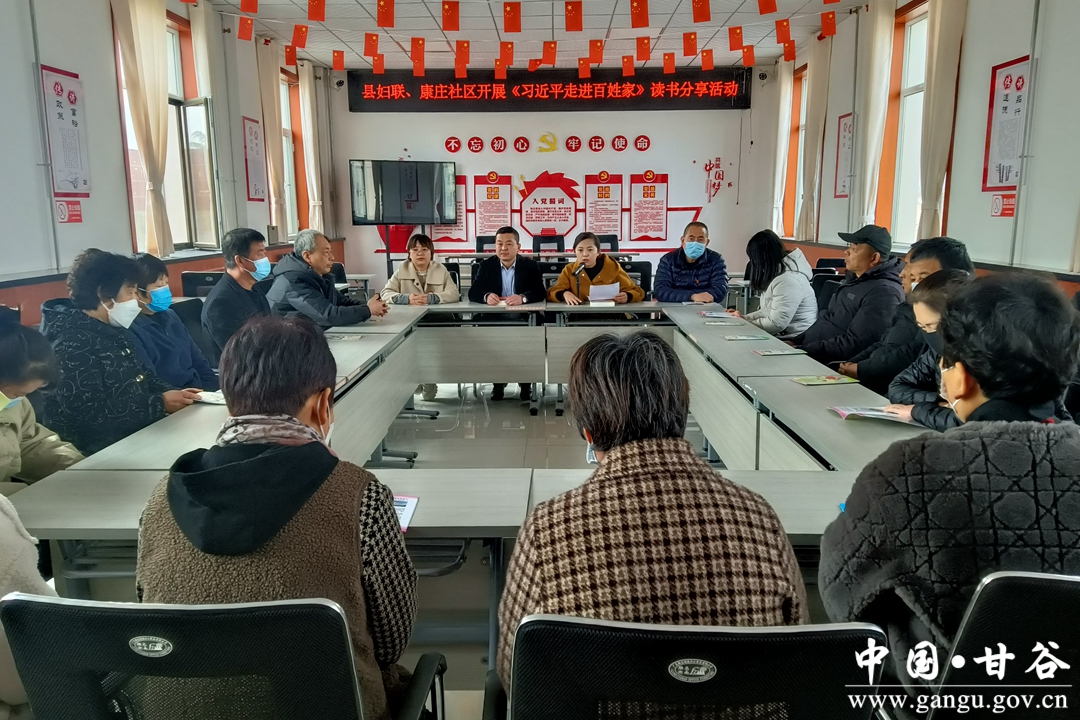 为感悟领袖为民情怀、凝聚团结奋进力量,4月7日上午,县妇联、大像山镇康庄社区开展《习近平走进百姓家》读书分享活动。《习近平走进百姓家》一书由全国妇联组织编写,通过32个家庭的朴实故事和感人场景,生动讲述了习近平总书记考察调研期间走进百姓家中,问生计冷暖、察民情民愿、讲惠民政策的感人故事,真实记录了新时代十年一个个普通家庭翻天覆地的变化,深刻展现了大国与小家、领袖与百姓的血肉联系。“2020年初春,习近平总书记来到武汉市东湖新城社区,实地查看卫生防疫,社区服务等情况,为“宅”加抗疫的武汉市民加油鼓劲儿,并与社区工作者、志愿者等亲切交流,让支持疫情防控的社区居民和长期奋战在防疫一线的社区干部备受鼓舞。温暖的眼神、关切的问候,让东湖新城社区的每一位居民深刻感受到,习近平总书记始终把人民群众的健康挂在心头。”分享会上,妇儿工委办副主任王静同志诵读了《习近平走进百姓家》精彩篇章节选,动情的讲述让参会人员深受感动。