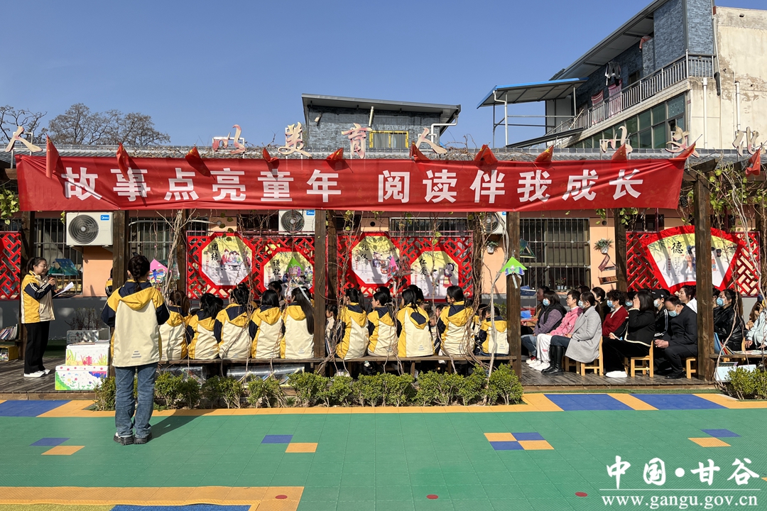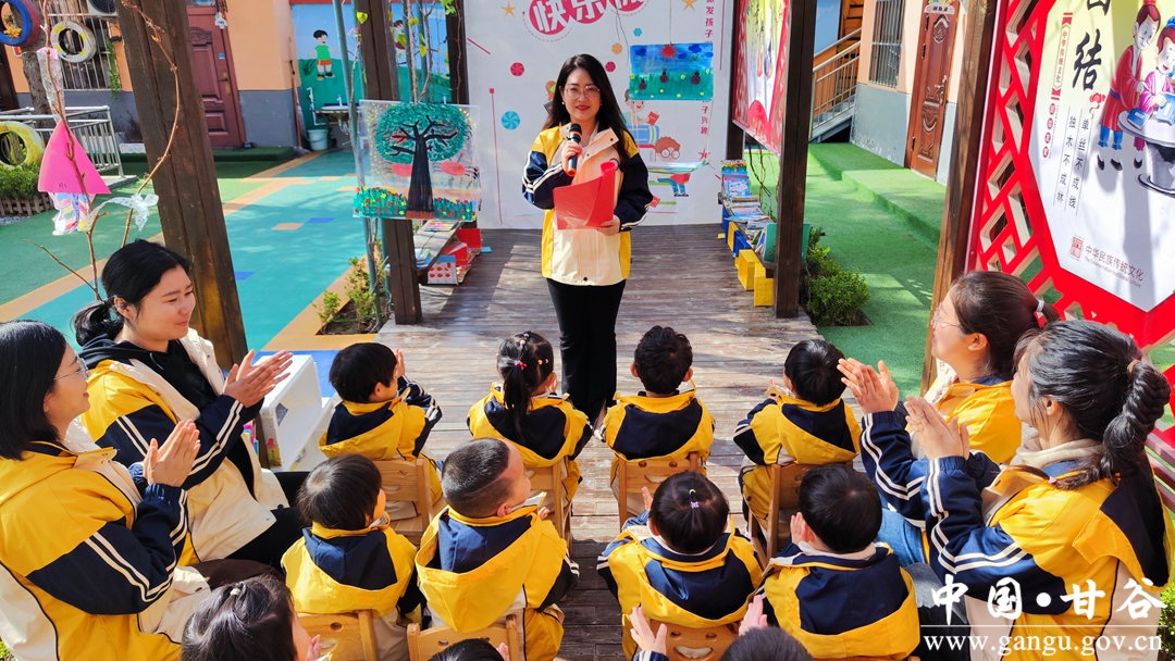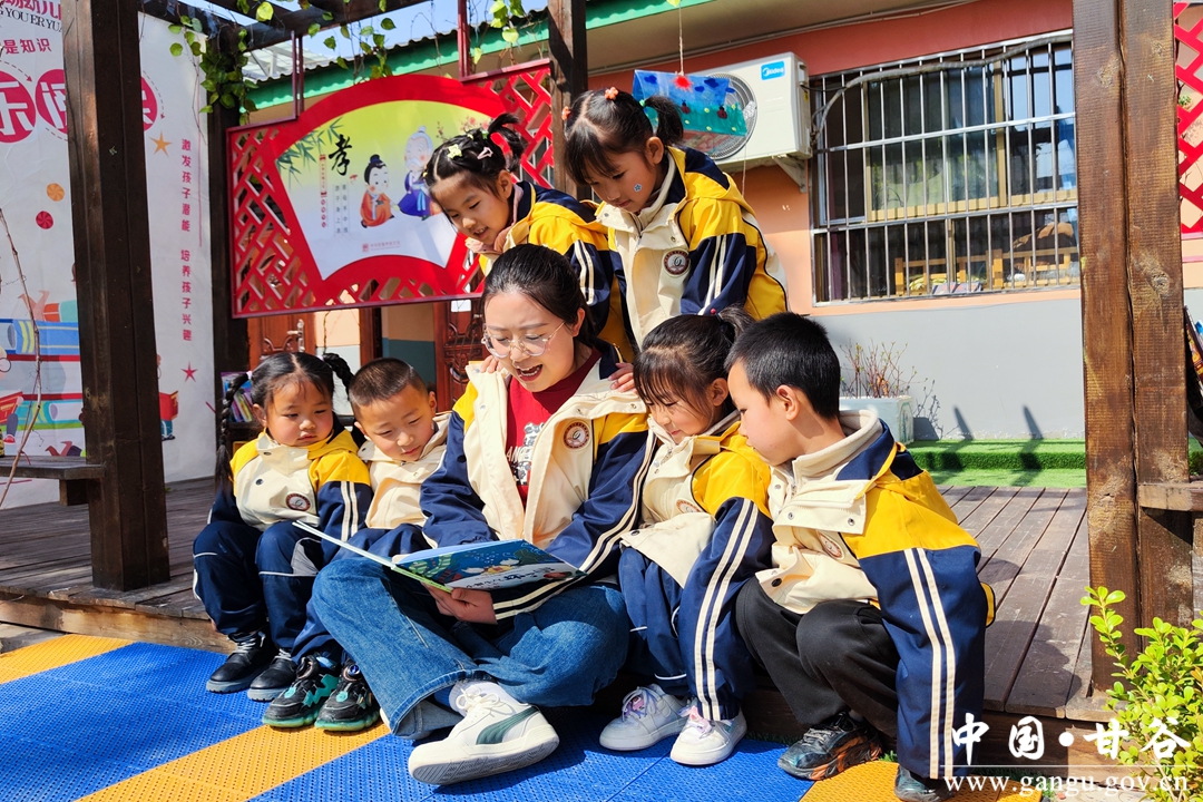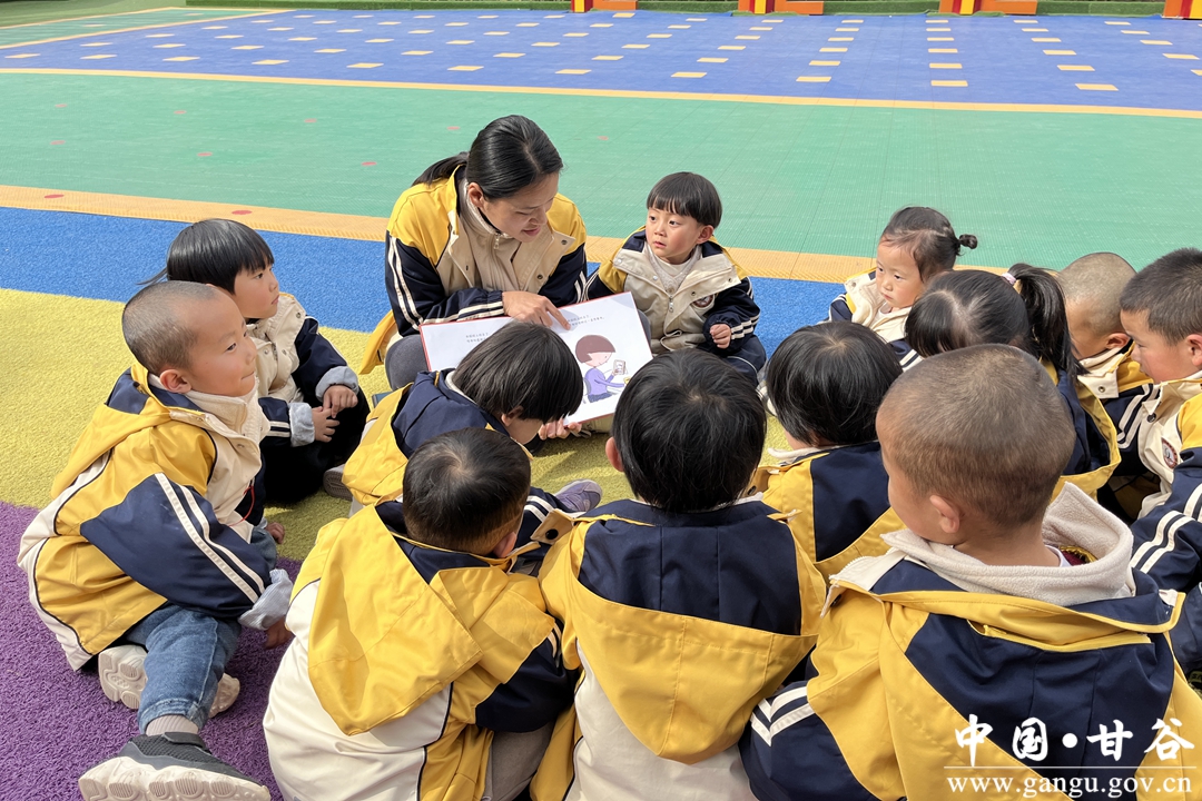 阳春布德泽,万物生光辉。正值三四月,杨场幼儿园里,嫩绿的小芽已铺满花园,成年的松树也换上了一身新绿,鸟儿成群结队飞过头顶,阳光透过树叶洒下光辉,长廊上几个稚嫩的淡黄色背影,正望着整片书海来回好奇,书中到底有怎样的世界?近两年来,随着“全民阅读”活动在甘谷县大像山镇杨场幼儿园深度开展,“书籍、绘本”不知不觉已成为了该园每个孩子一日生活中必不可缺的小伙伴。