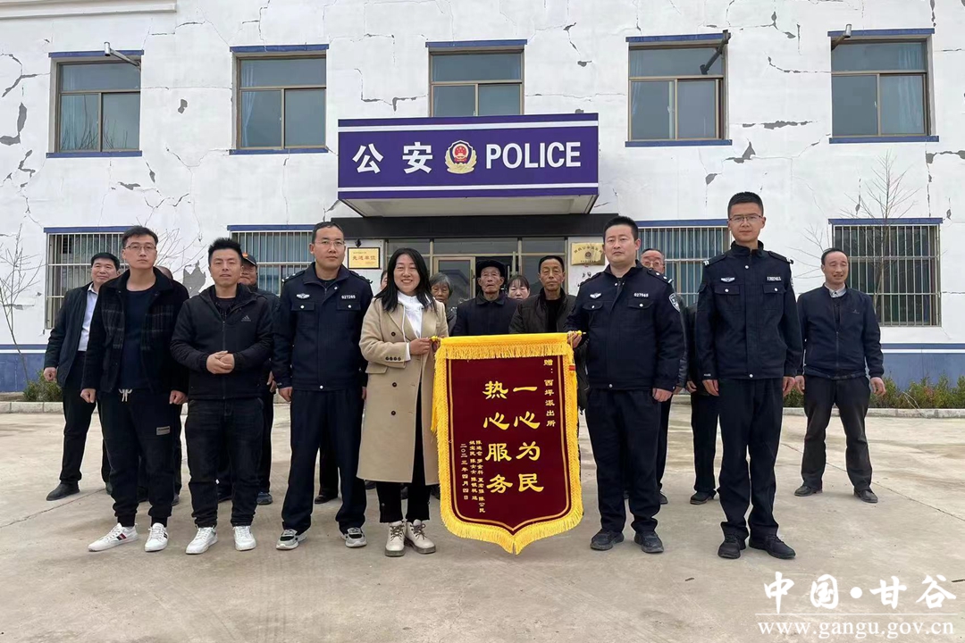 4月4日,姚某民及儿女从西安来到甘谷县,在为其母亲上完坟以后,携其兄弟姐妹、及其他亲属一行人,将一面印有“一心为民 热心服务”的锦旗交到西坪派出所民警手中,并对派出所全体民警表达了真挚的感谢。