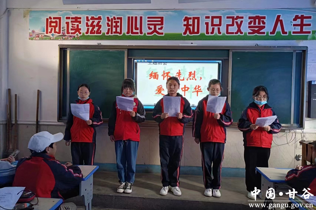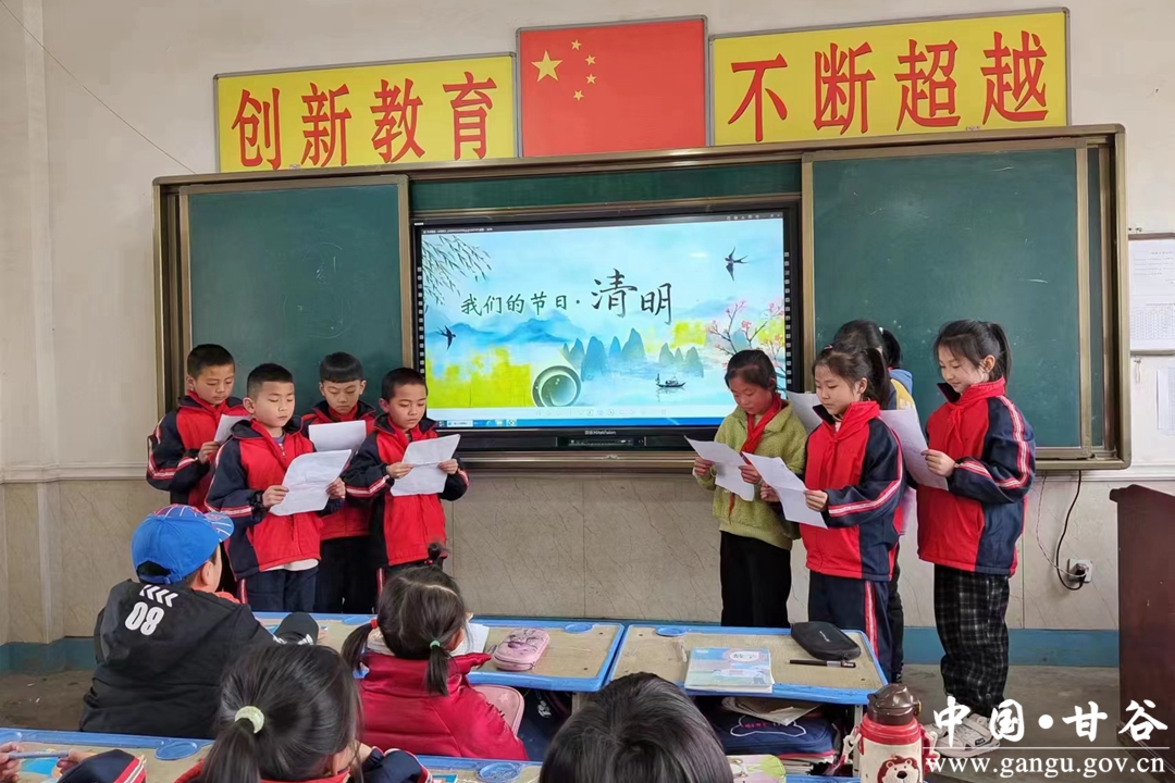开展红色经典诵读活动。4月3号下午,“缅怀革命先烈”经典诗词朗诵活动在甘谷县新兴镇令甲小学拉开了帷幕,学生们以《有的人》、《囚歌》等诗歌,追忆祖辈的艰辛,缅怀先人的功德,声情并茂,激情飞扬,用诗歌吟诵的形式表达了对革命先辈的崇高敬意、对古代先贤的深切缅怀。甘谷县第四中学开展了“清明祭英烈共铸中华魂”诗文诵读活动,引导学生继承先烈遗志,珍惜幸福生活,立志报效祖国。