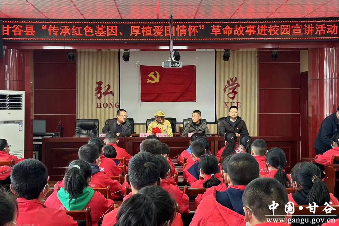 开展传承红色基因活动。4月3日下午,甘谷县教育局、共青团甘谷县委、退役军人事务局联合新兴初级中学开展了“传承红色基因、厚植爱国情怀”革命故事进校园宣讲活动,邀请90岁高龄的抗美援朝退役老兵王绍林讲述抗美援朝保家卫国的铁血故事。讲坛上,他用朴实的语言讲述了抗美援朝这份铁血战史及其保家卫国的历史意义。朴实的话语,蕴涵着浓厚的军人情结和大无畏的革命情怀,深深地感染着每一位聆听者,会场上数次响起了经久不息的掌声。