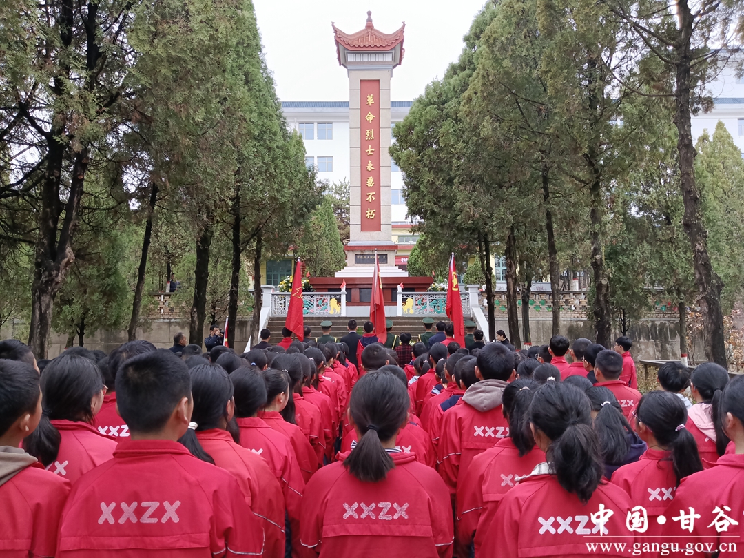 同日,甘谷县教育局联合县关工委、团甘谷县委、县退役军人事务局以及新兴初级中学在县革命烈士陵园开展了“缅怀革命先烈·继承革命传统”主题团日活动,新兴中学师生代表共计100余人参加,通过庄严肃穆的仪式教育,教育引导广大团员青年以革命先烈为榜样,发扬革命烈士的英勇顽强精神和艰苦奋斗作风,以更加奋发有为的精神状态、积极进取的工作作风,努力成长为社会主义合格建设者和可靠接班人。