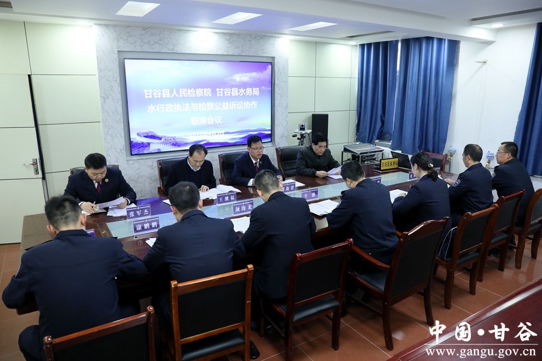 为了深入学习贯彻《中华人民共和国黄河保护法》,全面落实最高人民检察院,水利部联合印发的《关于建立健全水行政执法与检察公益诉讼协作机制的意见》,4月3日,甘谷县人民检察院、甘谷县水务局联合成立水行政执法检察公益诉讼协作办公室,旨在推动检察监督和水行政执法工作在检察公益诉讼领域的贯通协同,服务保障水利工作高质量发展。据悉,这是全省首家成立的水行政执法检察公益诉讼协作办公室。
