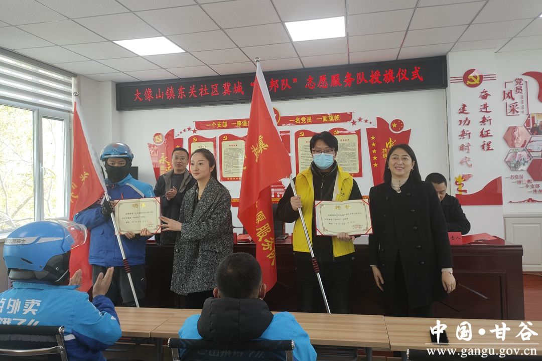 为延伸社会治理触角,提升基层治理质效,东关社区坚持党建引领,引导鼓励饿了么、美团外卖骑手到社区报到担任“流动网格员”,成为社区的民情前哨、城市安全的流动探头、城市文明的公益使者,4月4日上午,“冀城邦邦队”志愿服务队授旗仪式在大像山镇东关社区党群服务中心正式成立。
