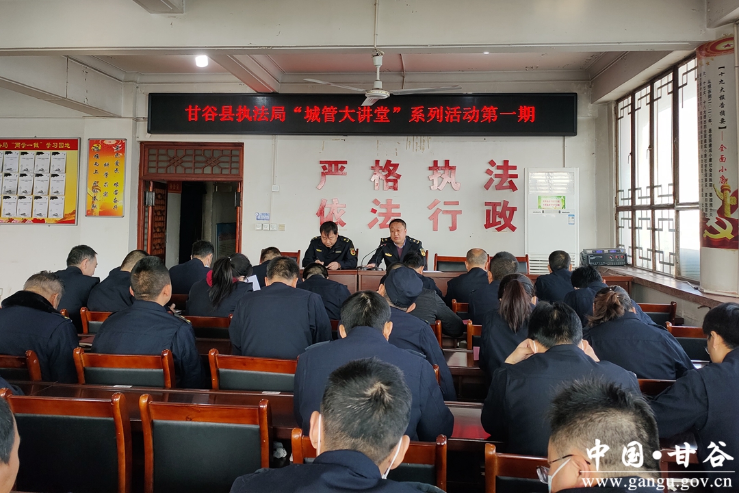 为深入贯彻落实党的二十大精神和习近平总书记对甘肃的重要讲话重要指示批示精神,进一步推动“三抓三促”行动走深走实,甘谷县执法局针对干部职工普遍存在“理论武装不深、知识储备不足、学用结合不紧”等问题,紧扣“能力要增强,我该会什么”这个主题,组织开展了专题练兵“城管大讲堂”系列活动。3月27日,甘谷县执法局举行“城管大讲堂”开班仪式,党组书记、局长马想红主持开班仪式,全体干部职工参加。