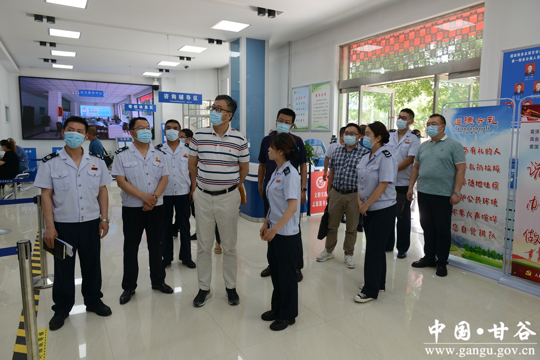 6月16日下午,税务总局西安特派办监管处(法制处)副处长苗宏钊一行3人深入甘谷县税务局调研督导工作,省局征管和科技发展处一级主任科员陈炎平,市局党委委员、总经济师鲜明及相关科室负责人陪同调研。