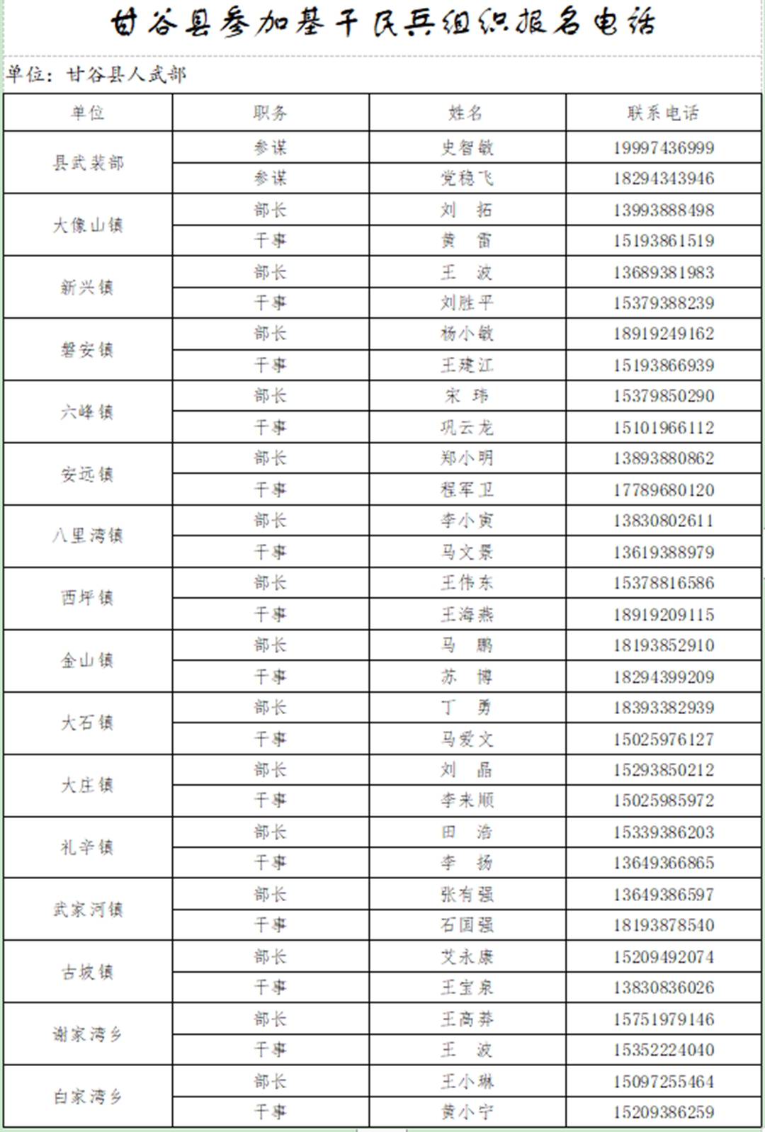 甘谷县关于报名参加基干民兵组织的公告