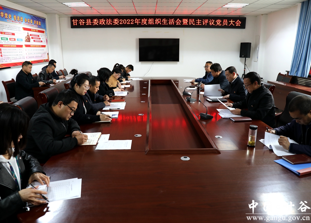 3月22日,甘谷县委政法委党支部召开2022年度组织生活会暨民主评议党员大会。县委常委、政法委书记杜兴以普通党员身份参加会议并作总结讲话,党支部书记黄永明主持会议。