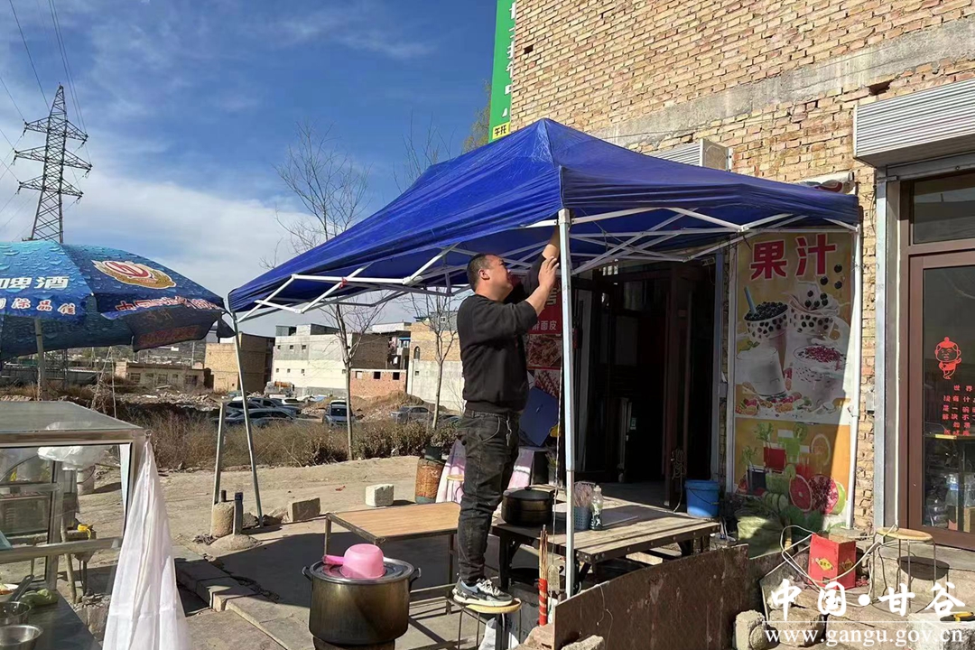 中队执法人员在整治过程中发现西城区九年制学校东30米巷道内一店铺占用公共空间搭建窝棚,我执法人员随即展开调查,经现场勘验深入了解后得知店主王某为拓展营业面积擅自搭建了该构筑物,根据《甘肃省城市市容和环境卫生管理办法》相关规定,我工作人员对当事人王某下发了《责令限期改正通知书》,对其深入讲解了城市管理方面的法律法规,通过反复宣传教育,王某认识到了自己的违法行为,主动拆除了搭建的窝棚,恢复了道路原状,做到了还路于民。整个执法过程中,我执法人员始终坚持问题导向,主动解决突出问题,以柔性执法促进工作高效落实,赢得了市民群众的好评。