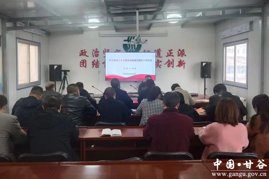 会议要求,深入学习宣传贯彻党的二十大精神是当前和今后一个时期的首要政治任务。在全面系统、深学细研上下真功,在弄通悟透、笃学力行上做实功,努力做到学思用贯通、知信行统一。推动党的二十大精神和习近平总书记重要讲话精神入脑入心、落地落实。要坚持真抓实干,全力以赴推动党的二十大决策部署落地见效。以学习贯彻党的二十大精神为动力,把本职工作放在大局中去思考、去谋划、去推动,把党中央提出的战略部署转化为本单位本岗位的工作任务,坚决扛起水土使命担当,全力推进甘谷水保高质量发展,走好生态水保路线。