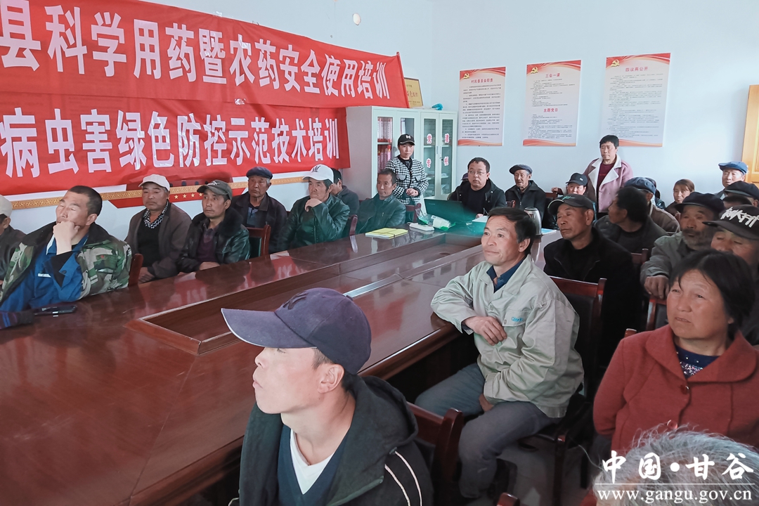 3月21日,甘谷县农技中心在磐安镇尉家庄村开展绿色防控示范技术培训,村上有关负责人及群众50余人参加了培训。