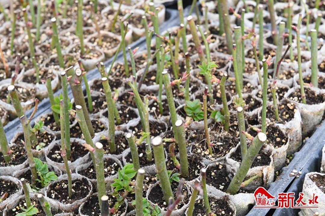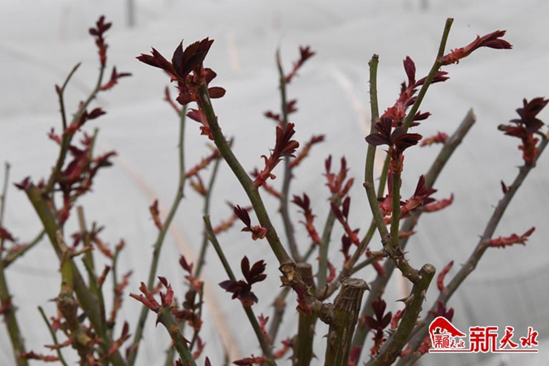 近日,来到甘谷月季产业振兴示范园,联动温室大棚里春意盎然,各种母本、苗木、高杆月季长势喜人,冬季扦插的月季花已经生根,正在出叶阶段。