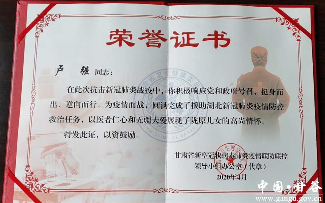 惟其艰难方显勇毅,惟其笃行方显珍贵。卢强同志是千千万万医生的缩影,在这个平凡的岗位上,他们默默奉献,艰苦奋斗,一步一个脚印,努力实现自己的人生价值。他是甘谷县人民医院的骄傲,是医者的楷模,是我们的“英雄”,他用博爱和真诚为患者点燃生命的希望,用实际行动把初心写在岗位上,把使命落实在肩上,用行动诠释着白衣战士“敬佑生命、救死扶伤、甘于奉献、大爱无疆”的职业精神。神圣的使命,让他不再是过去的自己,而是四万多抗疫大军中的一个勇士,回到工作岗位后,他继续埋头苦干,暗下决心:我一定要将这种抗“疫”精神发扬光大,将余生献给党和国家,献给光荣的医学事业……