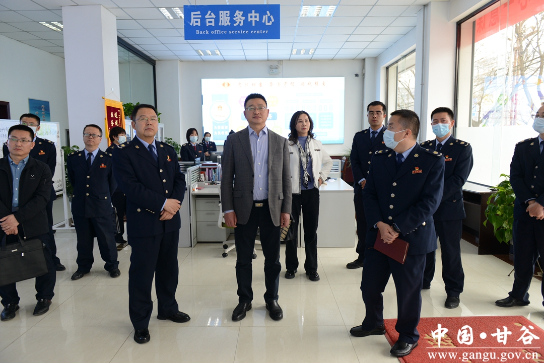 近日,甘肃省税务局党委委员、副局长向宇带领教育处负责同志和有关部门人员深入甘谷县税务局调研“两中心”实战化培训基地建设情况;市局党委委员、副局长郭立新和相关人员陪同调研。