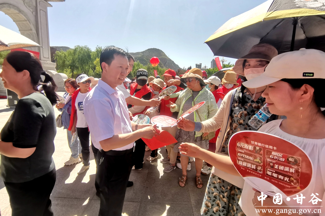 6月14日,甘谷县人社局联合甘肃银行甘谷支行在大像山公园开展以“守住钱袋子护好幸福家”为主题的防范非法集资暨预防养老金诈骗宣传活动。