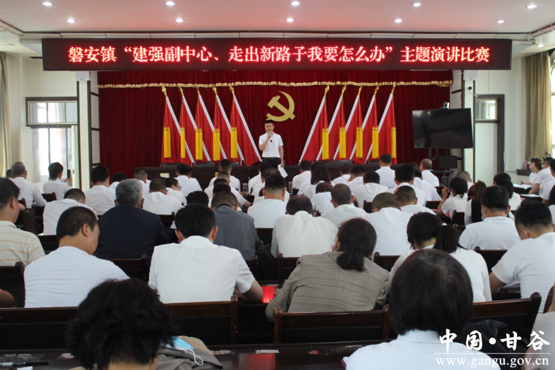 为全面贯彻落实省、市、县党代会精神,丰富全县“建强副中心、走出新路子我要怎么办”思想大讨论、工作大提升行动内涵,动员全镇各级党组织和广大党员干部进一步解放思想、更新观念,积极投身加快建设新福文明和谐美丽现代化甘谷的生动实践中来,引导广大党员干部既认真学好党情、国情、省情、市情、县情、镇情“公共课”,又结合工作职责学好岗位“专业课”,真正把中央和省市县委的精神领会好,推动学习效果转化为解决问题的创新思路和务实举措。近日,磐安镇举办了“建强副中心、走出新路子我要怎么办”主题演讲比赛。
