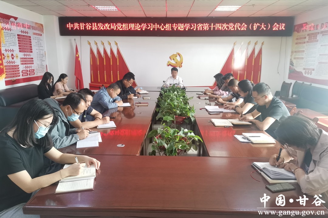 近日,甘谷县发展改革局召开党组扩大会议,专题传达学习省第十四党代会精神,安排部署全系统学习宣传工作。会上,党组成员围绕省党代会精神进行了交流研讨,全体干部进行了书面交流。