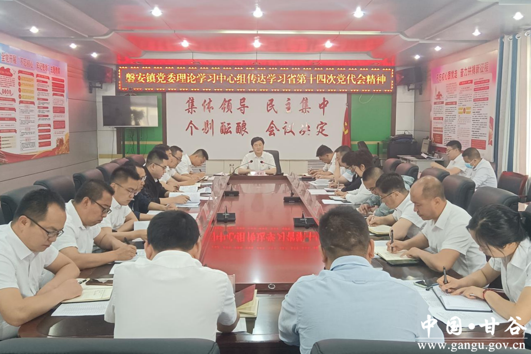 6月6日,磐安镇召开党委理论中心学习组会议和镇村两级干部会议,全面学习了尹弘同志代表十三届省委所作的工作报告和新当选为十四届省委书记后发表的重要讲话,并对深入学习贯彻落实甘肃省第十四次党代会精神进行了安排部署。