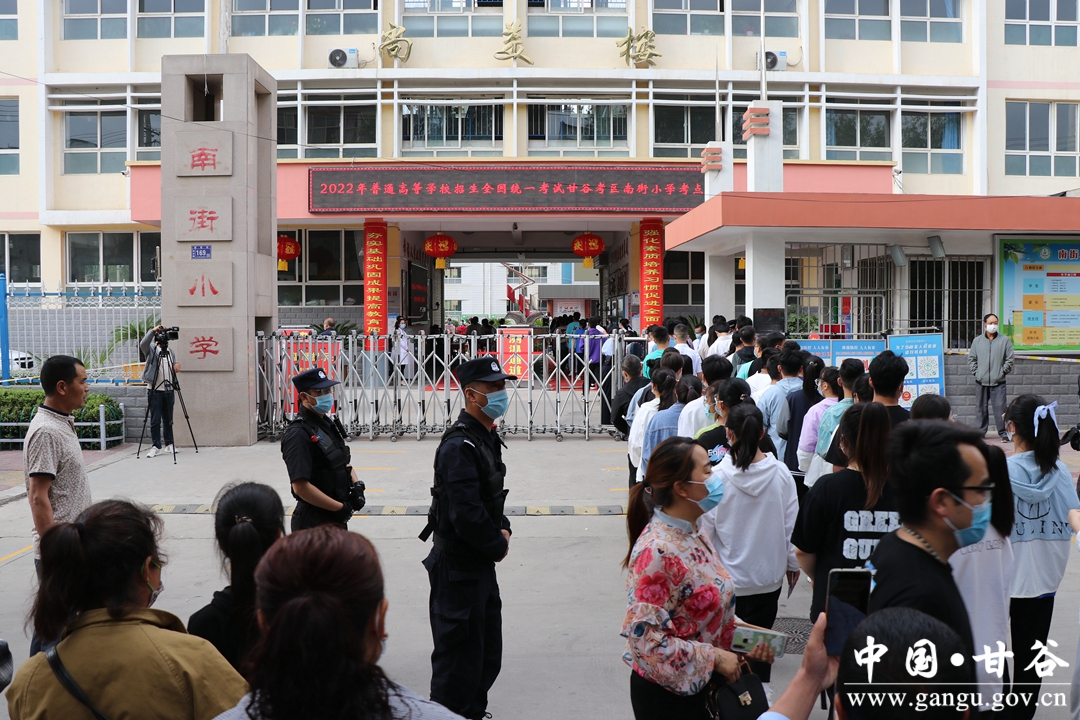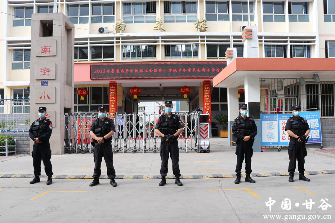 在各个考点,甘谷县公安局交警大队民警和交通文明志愿者一起疏导交通、疏散人群,同时由10名心理素质强,驾驶技术高的民警组成的快骑队在考场外随时待命,为广大考生提供服务。