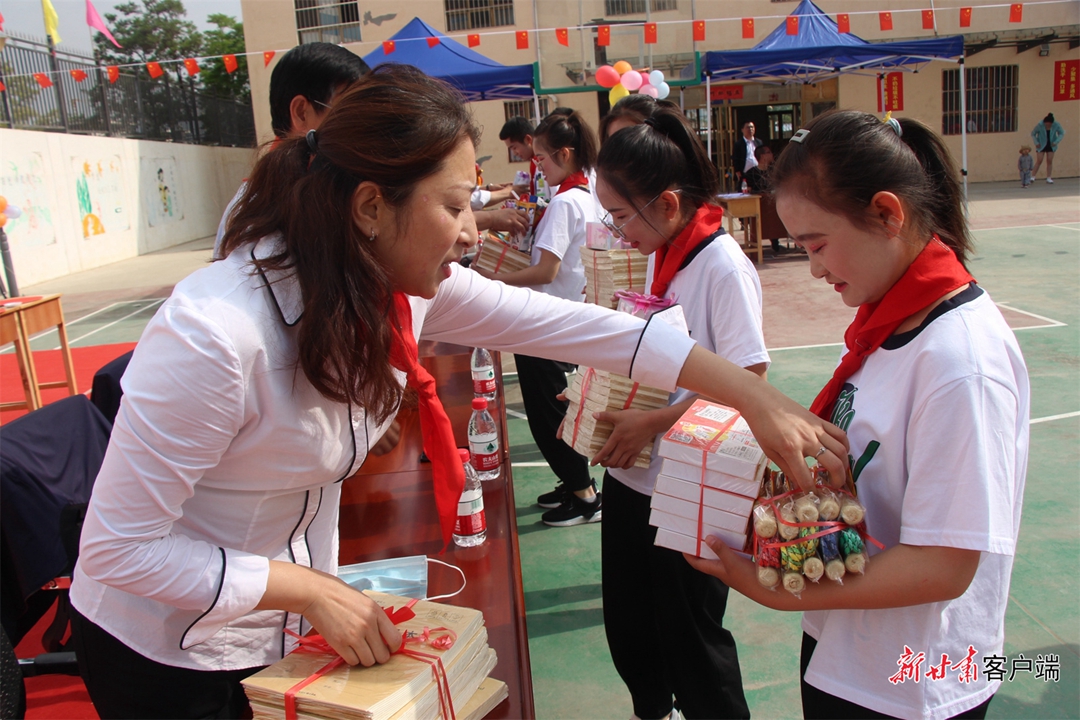 (谢倩霞为孩子们送去学习用品)