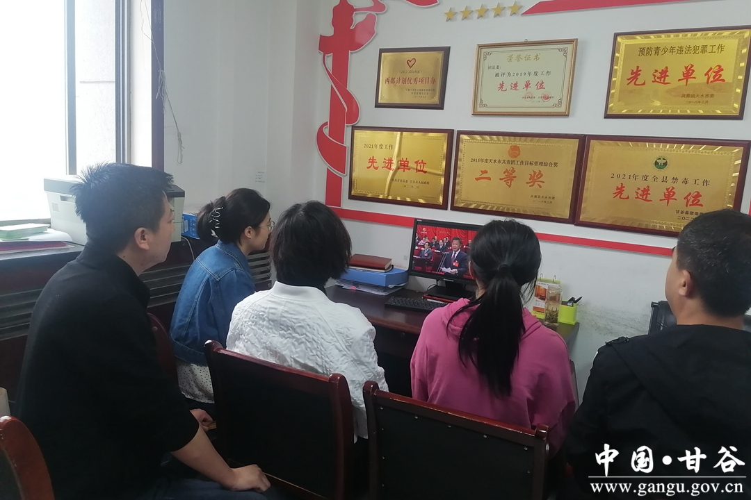 5月27日上午,中国共产党甘肃省第十四次代表大会在甘肃大剧院隆重开幕。尹弘同志代表中国共产党甘肃省第十三届委员会向大会作题为《继往开来奋进伟大新时代 富民兴陇谱写发展新篇章 为全面建设社会主义现代化幸福美好新甘肃努力奋斗》的报告。任振鹤同志主持大会。甘谷县组织党员干部职工和群众,通过广播、电视、网络、新媒体等多种形式收看省第十四次党代会开幕盛况。
