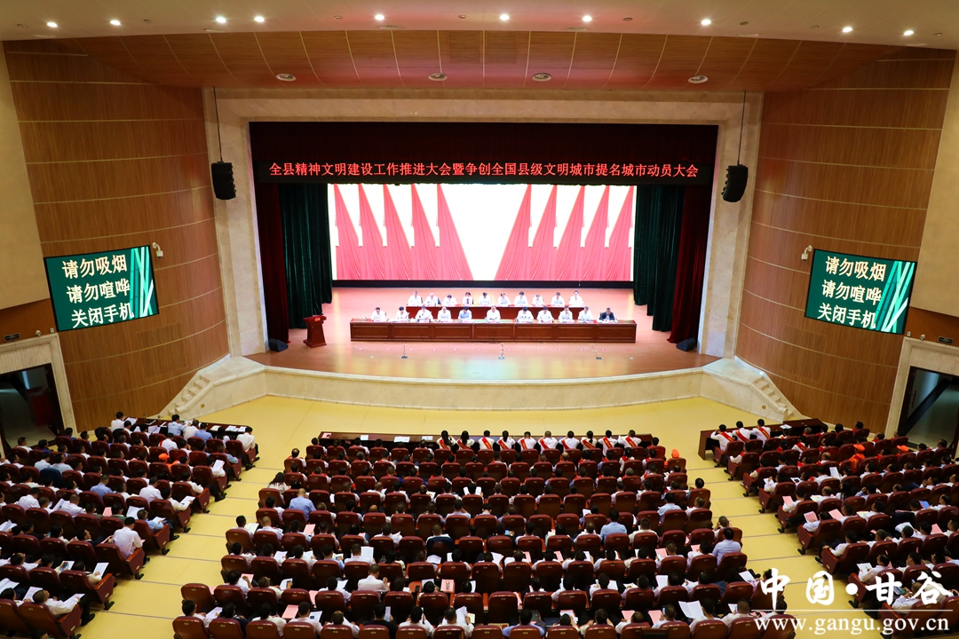 6月12日,甘谷县召开精神文明建设工作推进大会暨争创全国县级文明城市提名城市动员大会,深入学习贯彻习近平总书记关于精神文明建设的重要论述,认真落实全省精神文明建设工作推进大会精神,回顾总结全县精神文明建设工作成效,表彰先进、激发士气、加压鼓劲,动员全县上下聚焦争创全国县级文明城市这一目标,进一步统一思想、拉高标杆,守正创新、深耕厚植,全面深化精神文明创建,加快推进文明甘谷建设,为推动县域经济社会高质量发展提供强大的价值引导力、文化凝聚力、精神推动力。