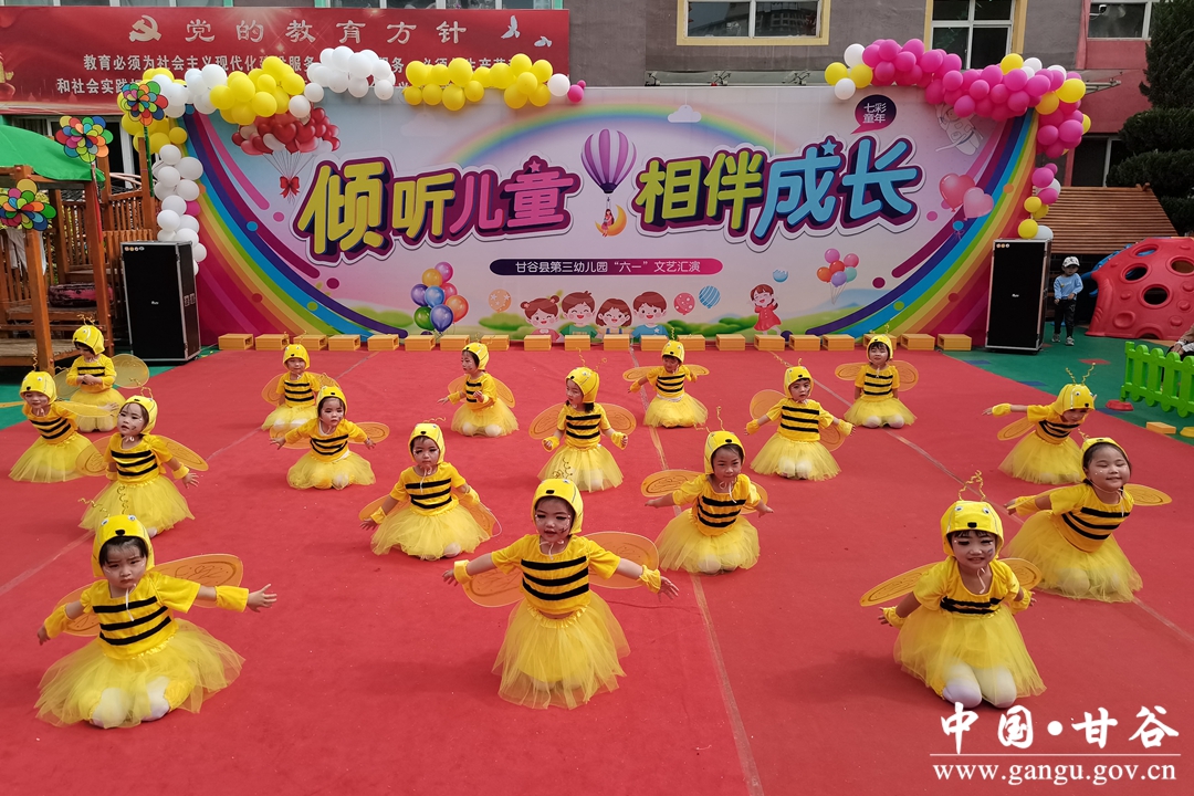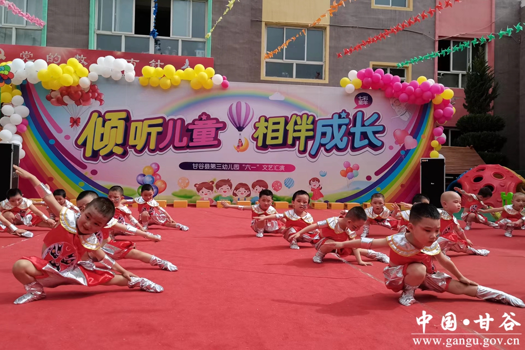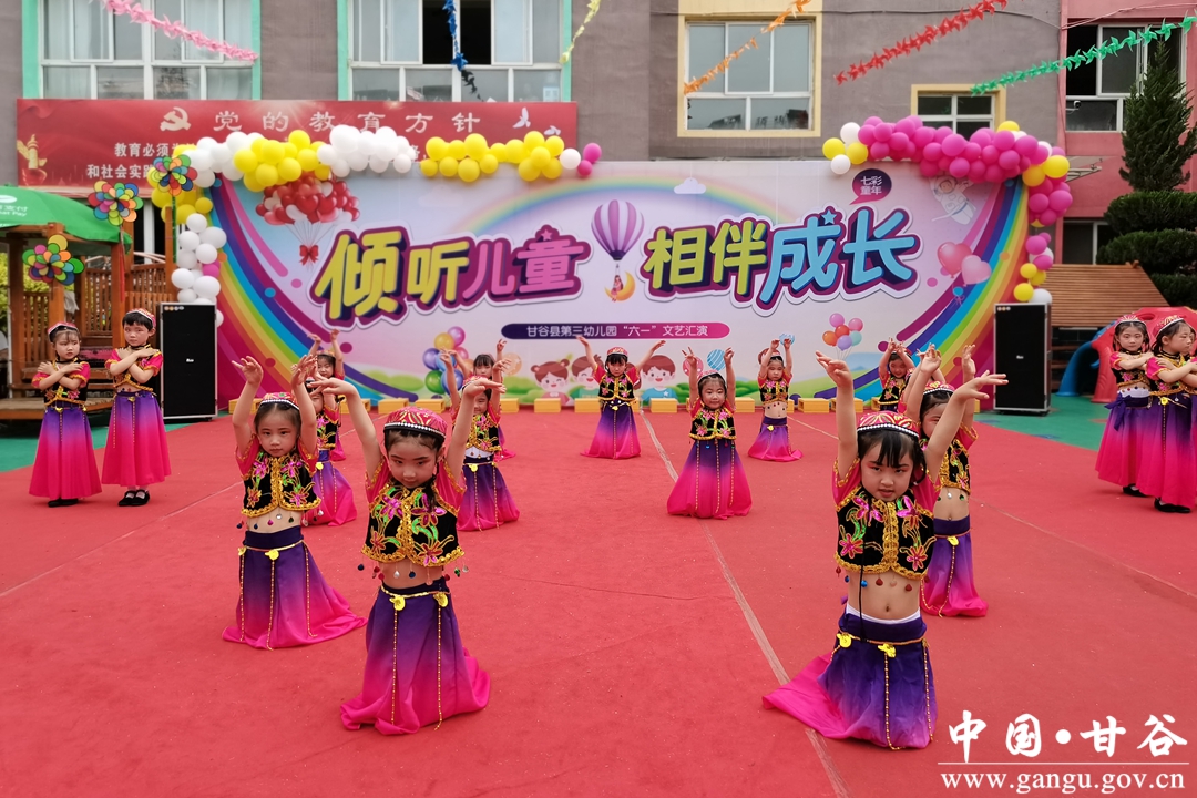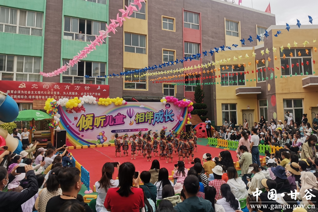 六月仲夏,向阳花开。在这鲜花烂漫,绿草如茵的季节,我们迎来了孩子们的盛大节日——六一国际儿童节!为使全园幼儿度过一个快乐的儿童节,丰富活跃校园文化生活,促进家园共育,2023年5月30日,甘谷县第三幼儿园隆重举行了以“倾听儿童 相伴成长”为主题的六一国际儿童节文艺汇演活动,全园共500余名师生和家长欢聚操场,整个校园沉浸在一片浓浓的节日氛围之中。