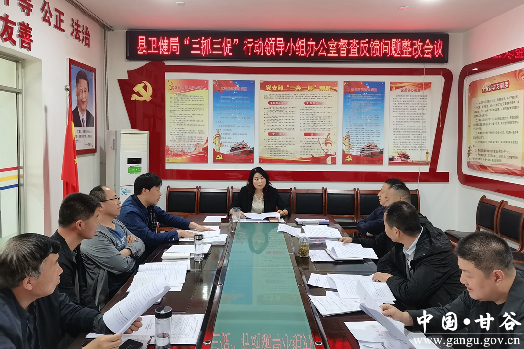 5月29日,甘谷县卫健局召开“三抓三促”行动督查反馈问题整改会议。会议由局“三抓三促”行动领导小组组长张红菊主持,行动领导小组副组长、办公室成员参加。