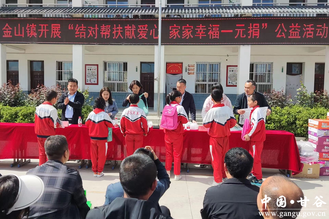 5月26日,金山镇开展结对关爱行动捐赠仪式,县人大常委会副主任杨晓涛出席捐赠仪式。捐赠仪式上,金山镇积极联系2家爱心企业向结对关爱对象捐赠资金3000元,联系1家爱心企业捐赠学习用品共计100件,引导参加活动人员通过线上线下相结合的方式开展“结对帮扶献爱心 家家幸福一元捐”公益活动,与会领导为困难家庭学生代表发放了学习慰问品。