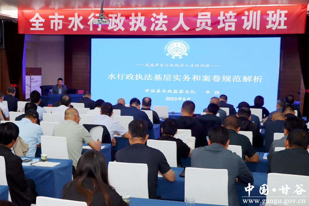 5月23日至25日,武威市水务局举办全市水行政执法人员培训班,水务系统近100名业务骨干参加了培训。特邀请甘谷县水政监察大队执法业务骨干牛强同志,围绕水行政执法基层实务和案卷规范解析等方面进行了授课。