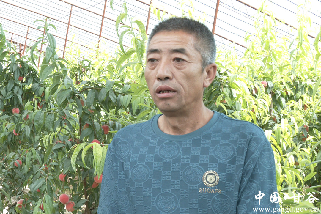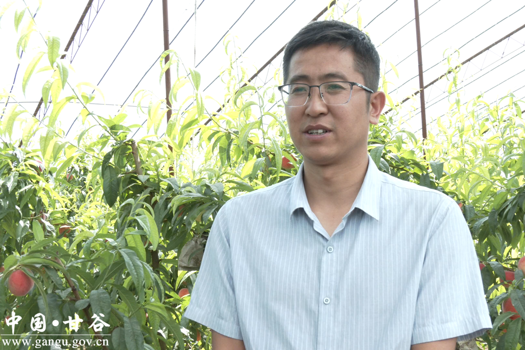 甘谷县果沣源农民专业合作社理事长金兆伟说,蜜桃基地现有大棚5座,引进三种优质蜜桃品种,其特点是错峰上市、色泽红颜、口感香甜、绿色无公害,比露天蜜桃提前上市两个月,按照现在市场行情,一斤可卖到20到30元,预计今年的大棚蜜桃产值可达两百多万元。