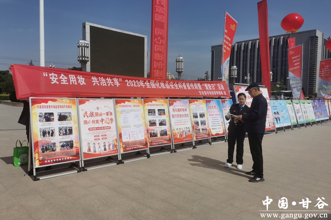 二是多措并举,丰富宣传形式。以“甘谷县大像山旅游文化节”为依托,在冀城广场、尚都百汇商业街、大像山公园人流密集等场所,利用大型电子显示屏、流动车宣传车、设立宣传咨询台、深入化妆品经营现场宣传等方式开展宣传,通过现场讲解引导消费者正确认识化妆品功效以及科学购买化妆品的注意事项,引导化妆品经营企业增强法律意识、责任意识和经营质量管理意识,督促企业履行产品质量安全主体责任。