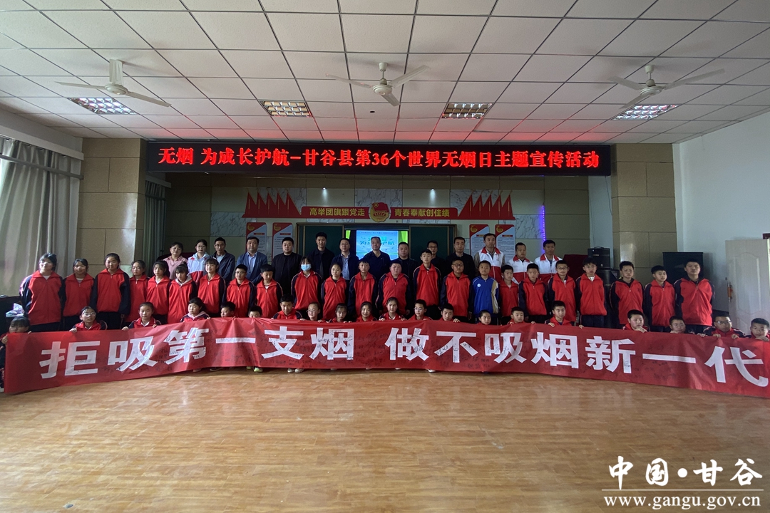 5月31日是第36个世界无烟日。近日,甘谷县以“无烟为成长护航”为主题的世界无烟日主题宣传活动走进甘谷县第五中学,宣传控烟科普知识,积极构建青少年控烟防控网。县卫生健康局、县卫生健康事务服务中心、县红十字会、金山镇中心卫生院相关工作人员以及甘谷五中师生200余人参加活动。