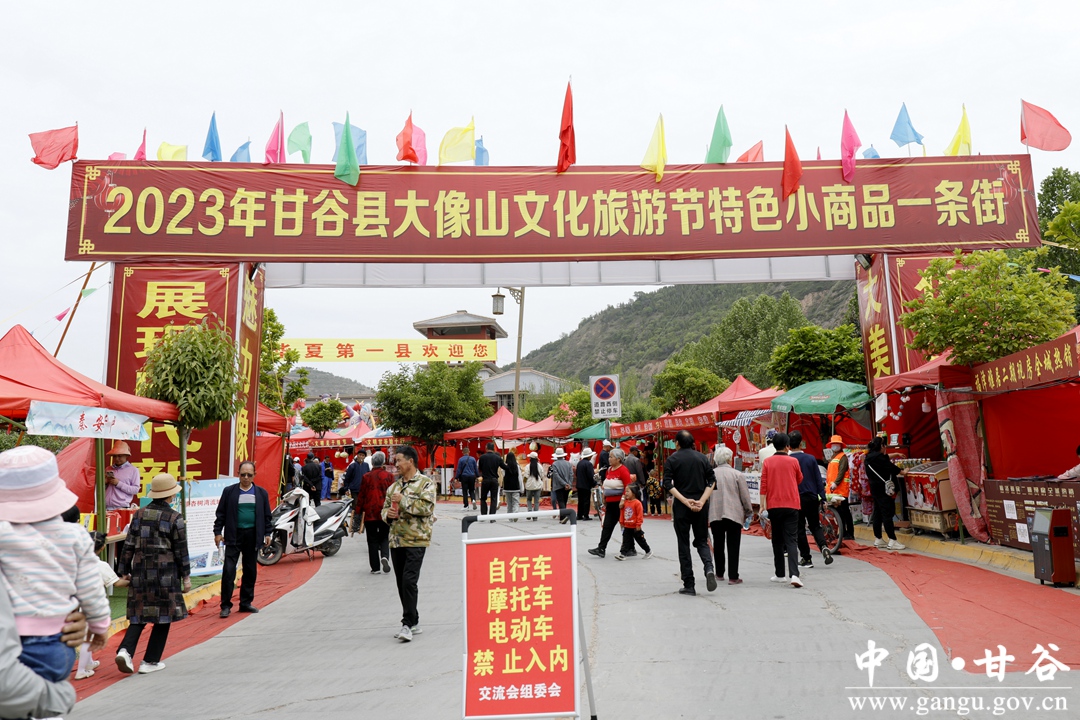 2023年大像山文化旅游节期间,甘谷县全新推出“淘尖货——特色小商品一条街”展销活动,各种特色商品、美食已布置妥当,让人们在看大戏的同时享受购物休闲的乐趣。
