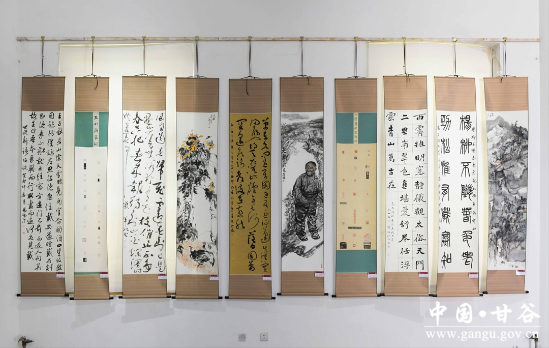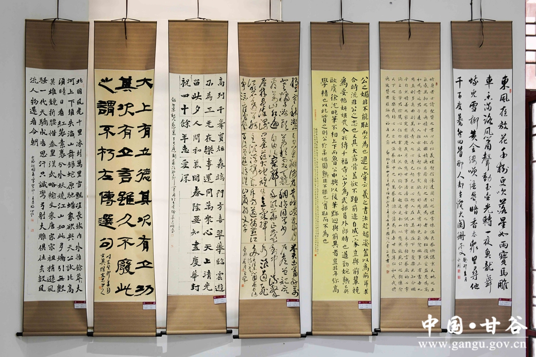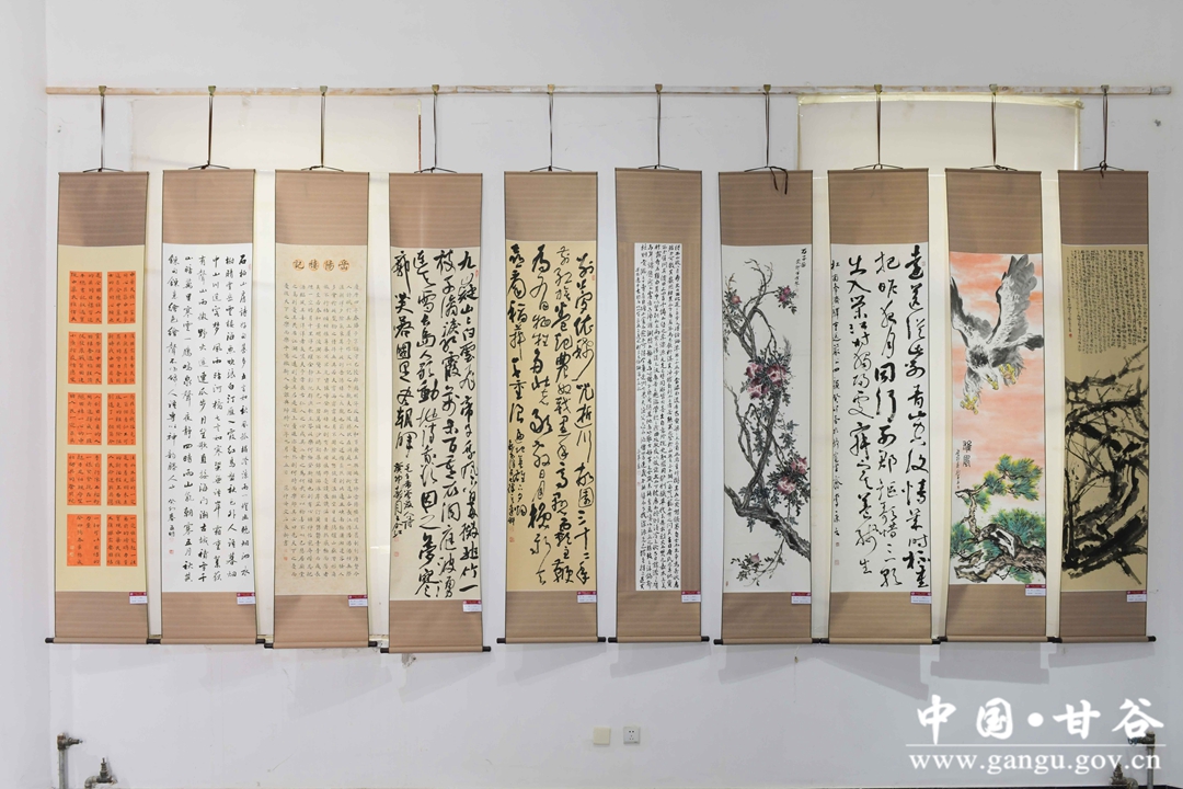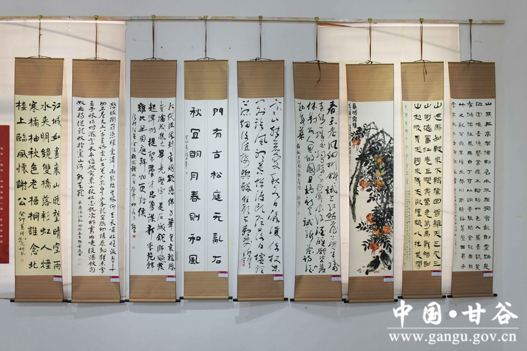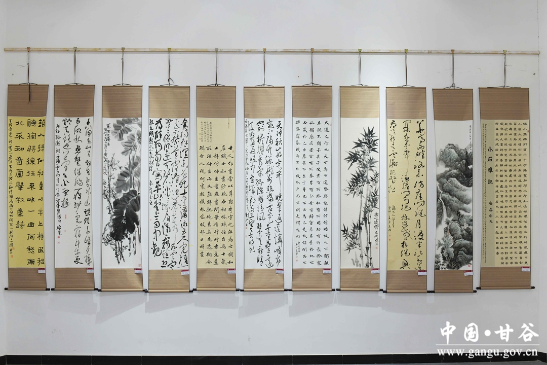此次书画展共展出甘谷县书画家作品60幅。书法作品有浑然古朴的篆隶,有工整隽秀的楷书,有挥洒自如的行草书,形式多样,异彩纷呈。绘画作品内容涉及人物、山水、花鸟等多种题材,笔墨淋漓,色彩斑斓,具有很强的观赏性和感染力。作品中的一笔一画,一草一木,一山一水,一景一物,都饱含着书画家对祖国文化的眷恋之情。