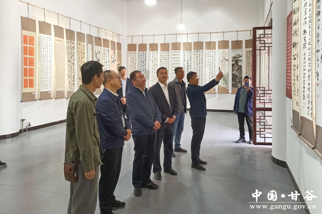 5月22日,甘谷县“石榴杯”书画展在大像山游客服务中心开展,市委统战部副部长、市民宗委党组书记、主任傅小春,县委常委、统战部部长王见学观看了展览。
