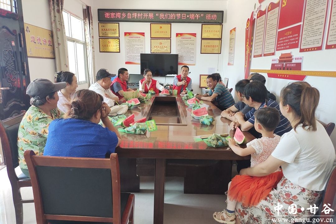 活动现场,乡村干部、老党员和三留守人员、特殊困难群众们齐聚一堂,村里的文明户主动为大家宣讲培养好家风的事迹,村干部则为大家宣讲普及端午传统民俗,大家认真聆听,深受启发。宣讲活动结束后身穿红马甲的志愿者们端来“幸福瓜”和“暖心粽”,群众们有说有笑,现场节日氛围浓厚。