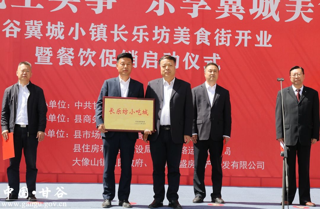 张秉春在致辞中说,近年来,县委县政府秉承“以商承文、以文带旅、以旅兴商”思路,将打造特色商业街区作为扩大消费新供给、开拓消费新场景、激发消费新活力的有效载体和重要举措,聚力打造集历史文化、特色商业、文化创意、时尚休闲为一体的商业街区。我县首条特色餐饮街区——冀城小镇长乐坊美食街今天正式开业运营,不仅是我县特色餐饮街区建设进程中的一件大事喜事,更是对外展示甘谷的一个靓丽窗口、市民打卡消费的首选之地、助力消费回升的重要利器。