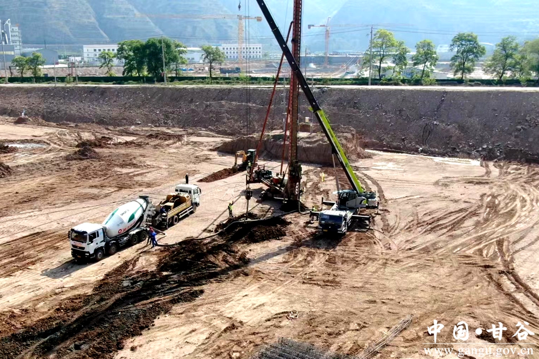 5月12日,在位于甘谷县天水经济技术开发区翼城产业园杰瑞10万吨锂电池负极材料一体化项目建设工地,长螺旋钻机、起重机相互配合进行打桩、浇筑桩基,运输车、装载机、挖掘机作业声轰鸣,正在加紧开挖、转运土方,一派繁忙的施工景象。