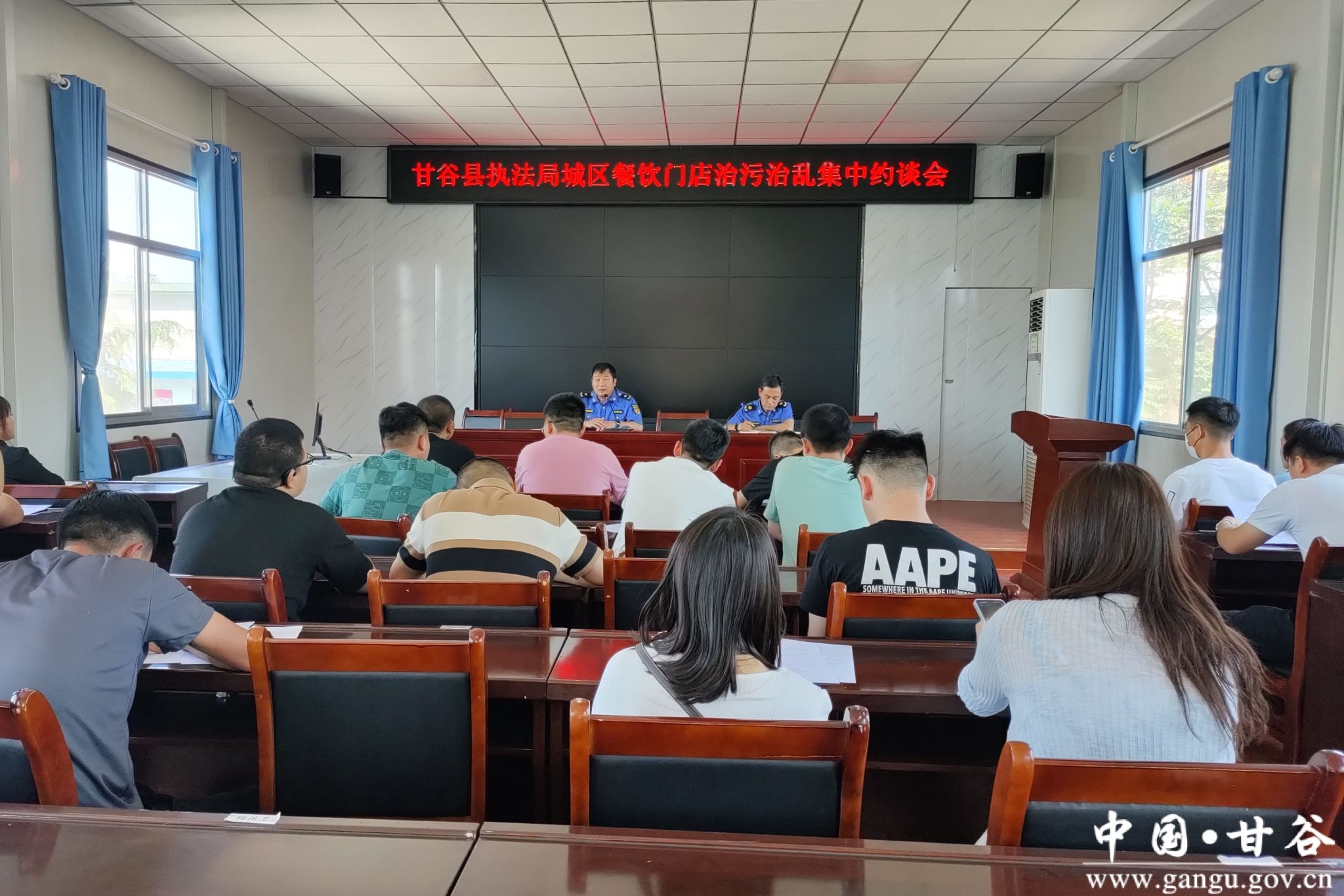 近期,随着夏季高温天气的逐渐到来,城区餐饮门店和夜市烧烤占道经营、乱泼乱倒、油烟噪声污染环境现象有所反弹。为规范城区餐饮门店经营秩序,努力推动全国县级文明城市提名创建工作“起好步、开好头”,给市民营造一个安静、清爽、安全的夏日城区环境,6月30日下午,县执法局组织召开了城区餐饮门店治污治乱集中约谈会,召集新城路、滨河路、富强路、像山路等路段共计30余家烧烤类餐饮经营户进行了集中约谈,并和各餐饮门店经营户签订了《“门前四包”责任书》。