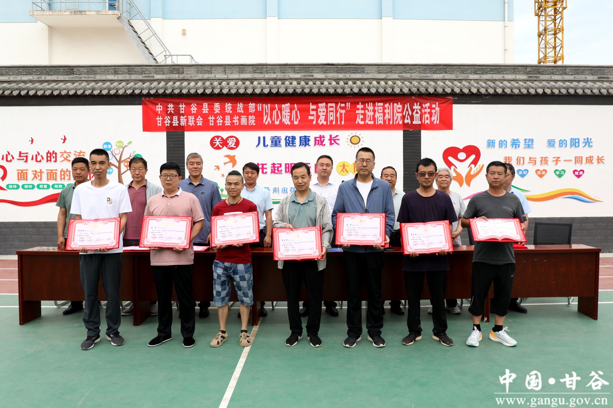 7月7日,县委统战部联合甘谷新联会、书画院的艺术家们在县儿童福利院开展书画作品捐赠活动。县委常委、统战部部长王见学出席活动并讲话。