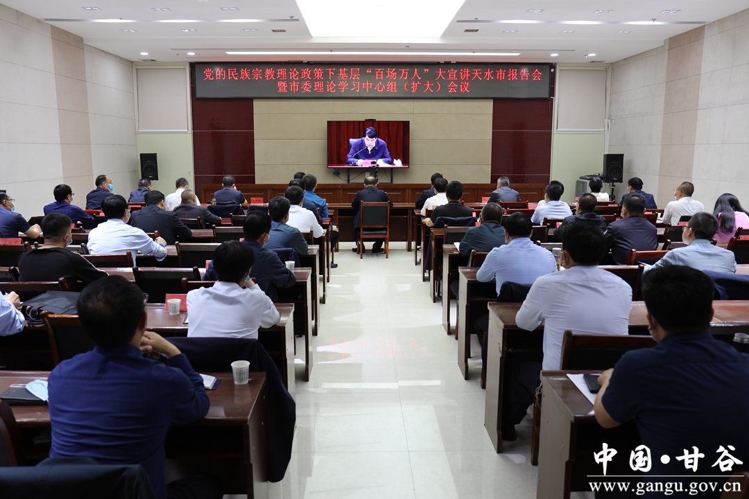 5月7日下午,全省民族宗教理论政策下基层“百场万人”大宣讲天水报告会暨市委理论学习中心组学习(扩大)会议召开,省委统一战线工作(省委民族宗教工作)领导小组第二宣讲组组长、省委统战部副部长、省民委主任赵凌云作宣讲报告。