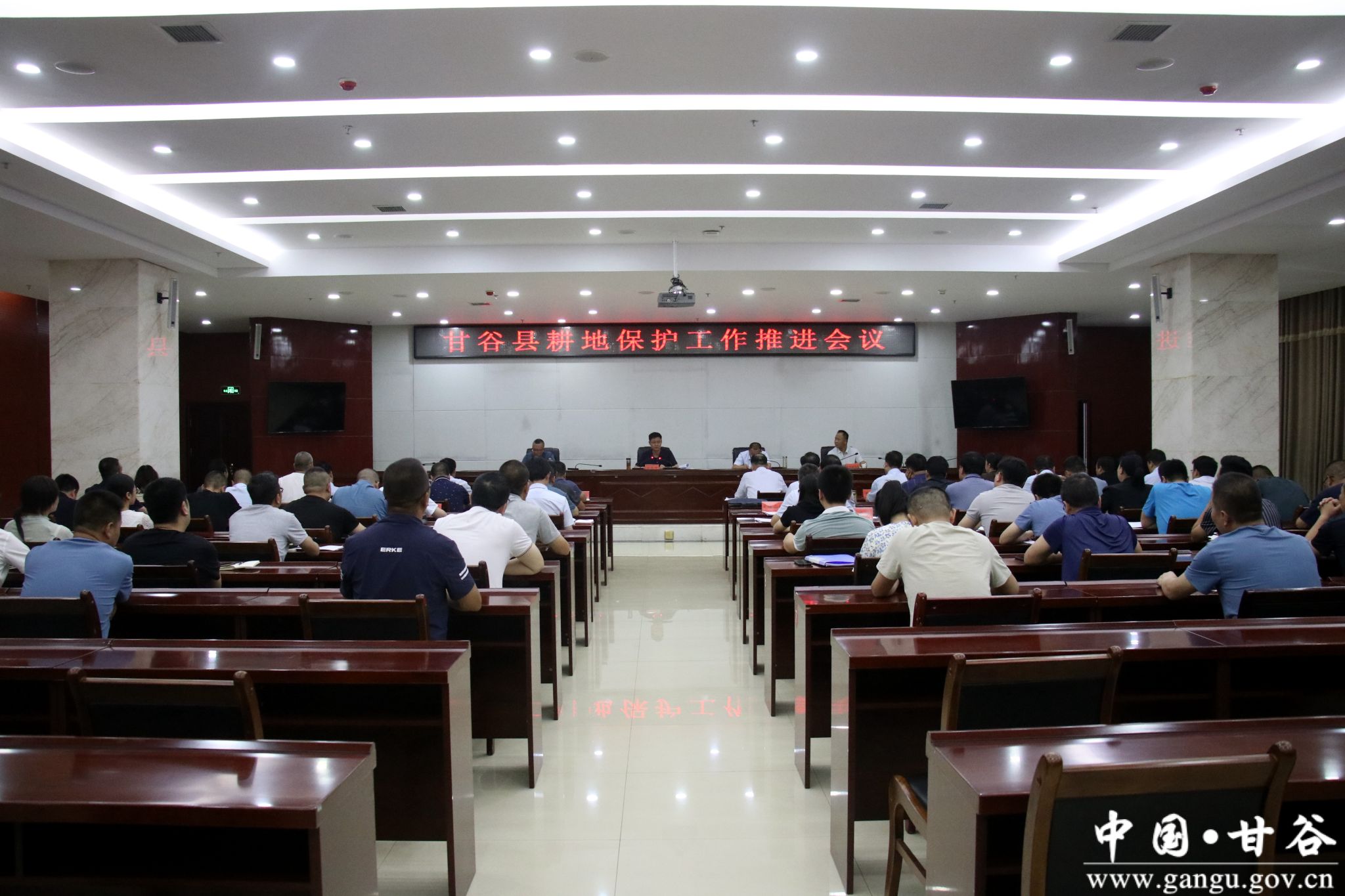 为进一步强化耕地保护和粮食安全责任制落实,确保完成市级下达的“三区三线”耕地保有量和永久基本农田保护面积,7月19日,甘谷县召开耕地保护工作推进会,县委副书记、县长孙忠平出席会议并讲话;县委常委、副县长李斌斌主持会议;县委常委、政法委书记刘强宣读《2022年度乡(镇)党委和政府耕地保护责任目标“自考核”工作方案》。各乡镇党委书记、县直相关部门主要领导、业务专干共计60余人参加会议。