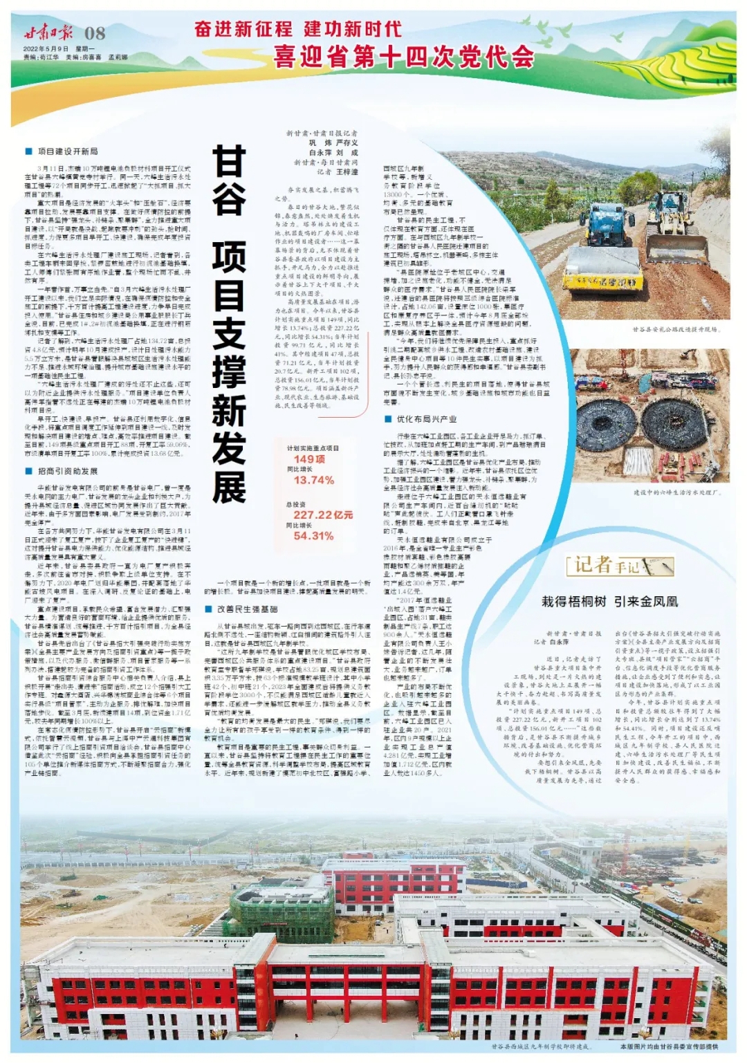 “计划实施重点项目149项、总投资227.22亿元,新开工项目102项、总投资156.01亿元……”这些数据背后,是甘谷县不断提升城乡环境、改善基础设施、优化营商环境的付出和努力。