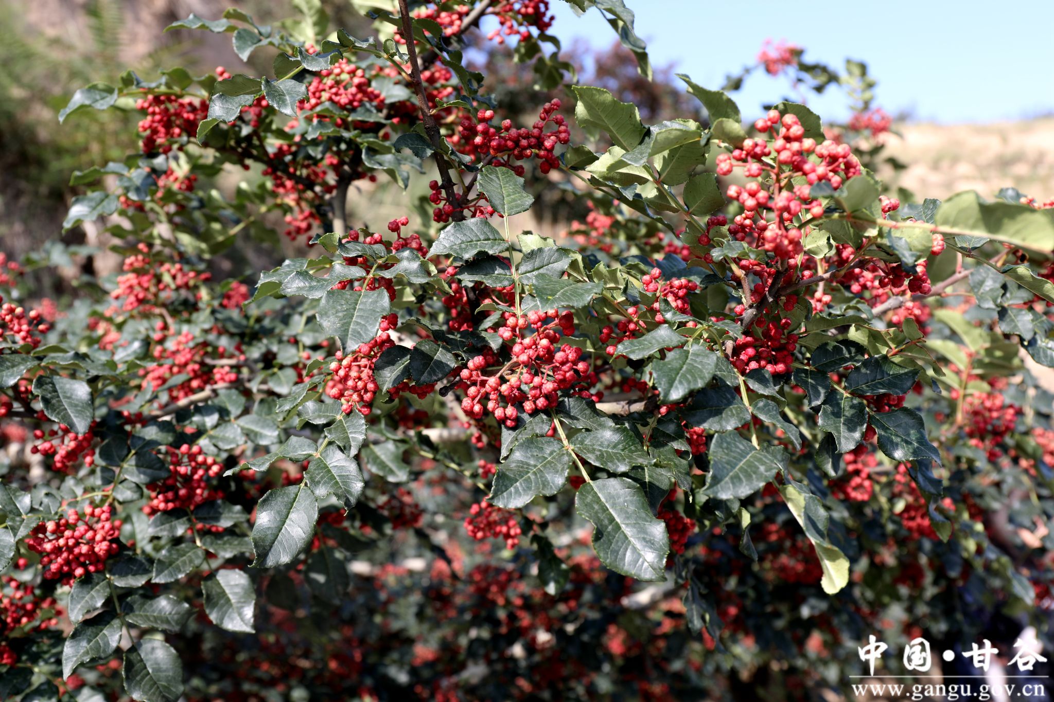 眼下,甘谷县大红袍花椒陆续进入成熟采摘期。在六峰镇金坪村万亩花椒种植基地,一簇簇颗粒饱满、色泽艳丽的花椒挂满枝头,在阳光照耀下显得格外火红。