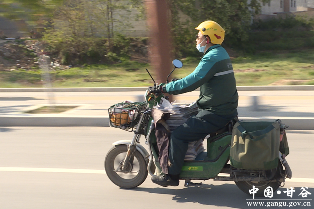 与往常一样,张建刚每天早晨都会早早来到甘谷县邮件处理中心,和同事们一起取报、分拣、核点、消毒、装包上车后,他骑车载着几十斤重的邮件开始一天的投递工作。
