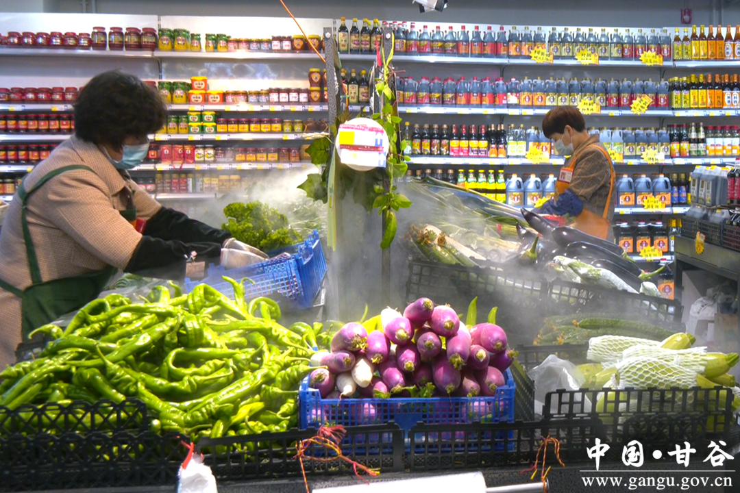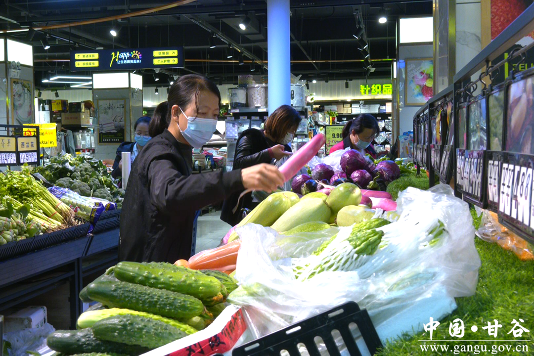 在甘谷县三保超市,记者看到各种新鲜的蔬菜、水果、肉类等摆满了货架,消费者正忙着选购自己需要的商品。甘谷县三保超市值班经理李晶晶告诉记者,像米面粮油储存大概30多吨,完全能够满足居民节日期间的消费需求。