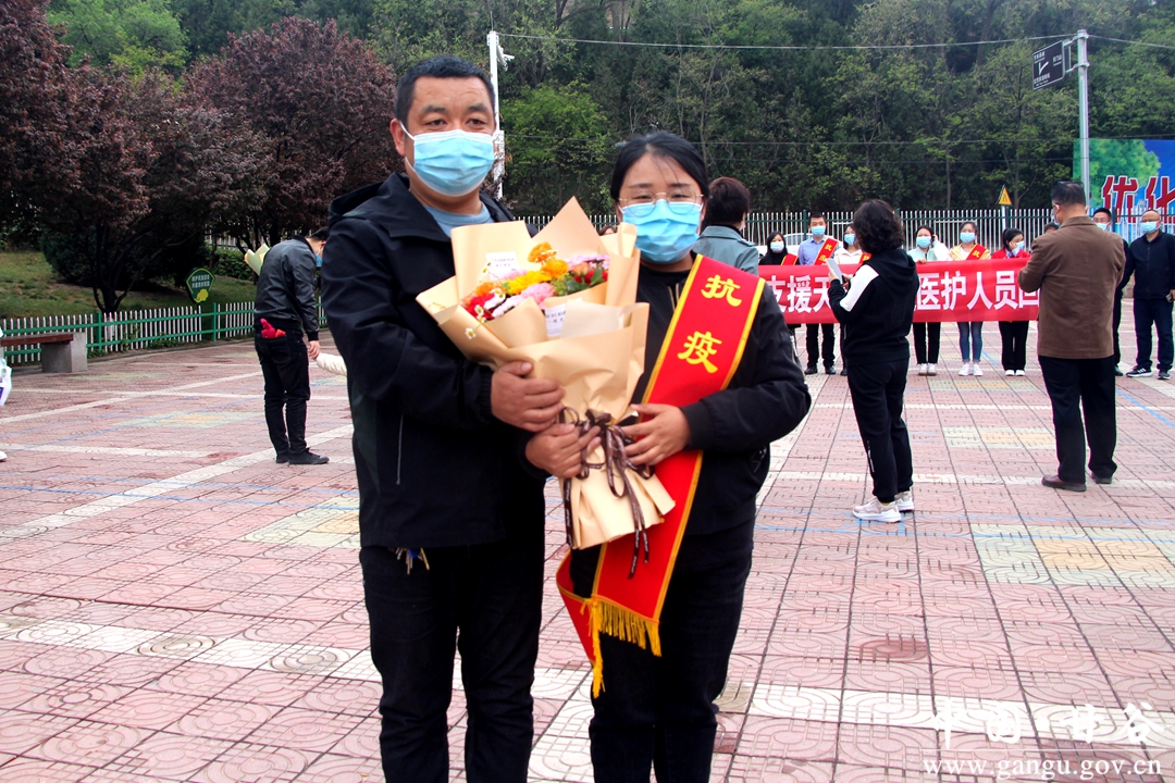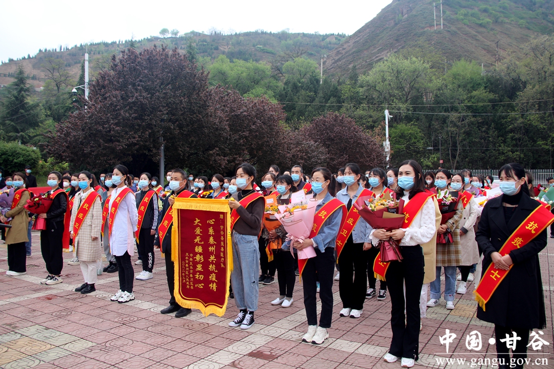 4月14日上午,甘谷县100名支援天水核酸采样的医护人员在圆满完成任务后顺利返回甘谷,副县长刘强和县卫健局负责人迎接医护人员回家。
