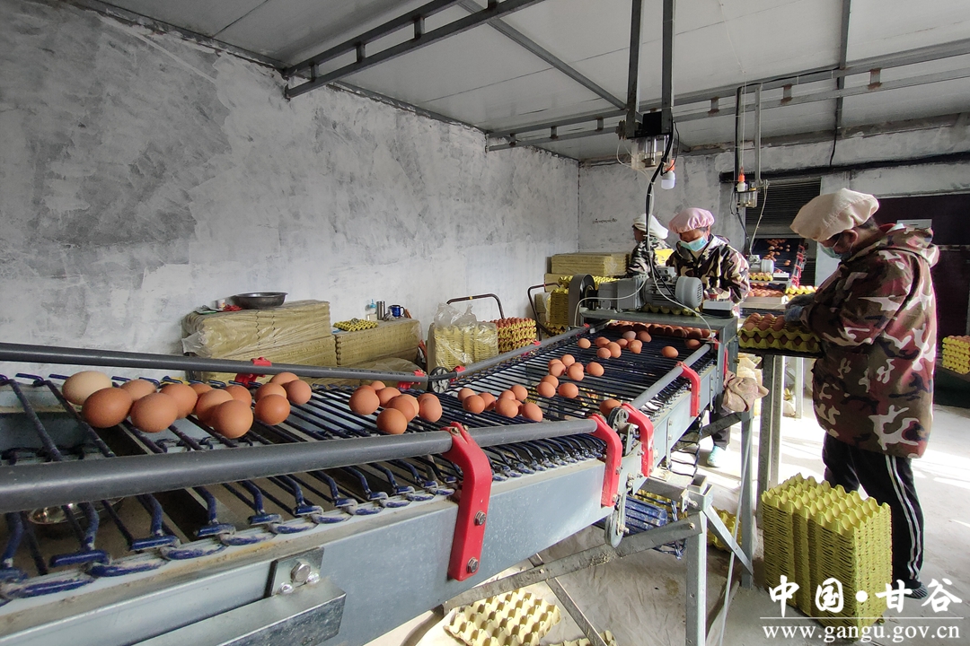 记者来到甘谷丰裕蛋鸡养殖场时,正赶上工人收鸡蛋。蛋架上一枚枚鸡蛋通过传送带送到捡装台,工人们正在快速捡蛋装盘。鸡场上料、捡蛋等都实现了机械化,粪污采用有机发酵塔全部做成有机肥,直接销往周边农户。
