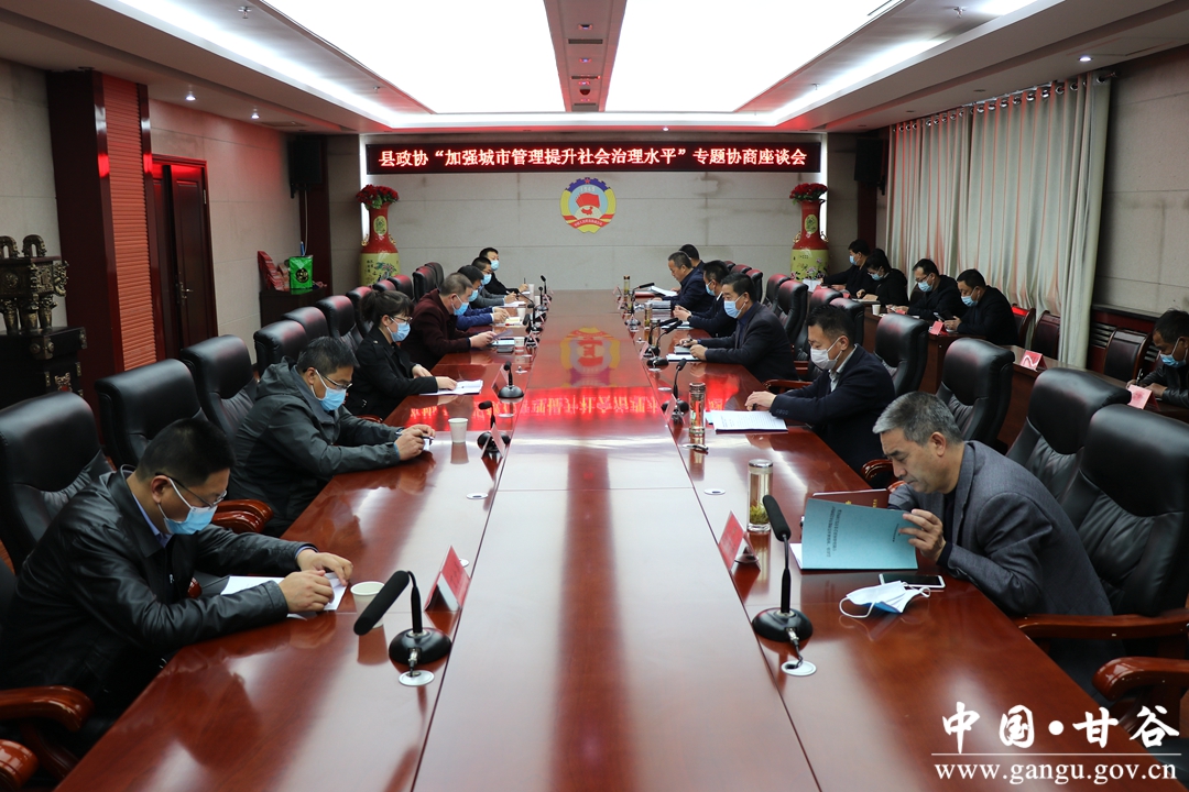 3月30日,甘谷县召开加强城市管理提升社会治理水平专题协商座谈会。县政协党组书记、主席曹明忠出席会议并讲话;县委常委、副县长张秉春,县政协副主席田小龙、马清平出席会议;县政协副主席郭有生主持会议;参与前期调研的各位委员和相关部门负责人参加会议。